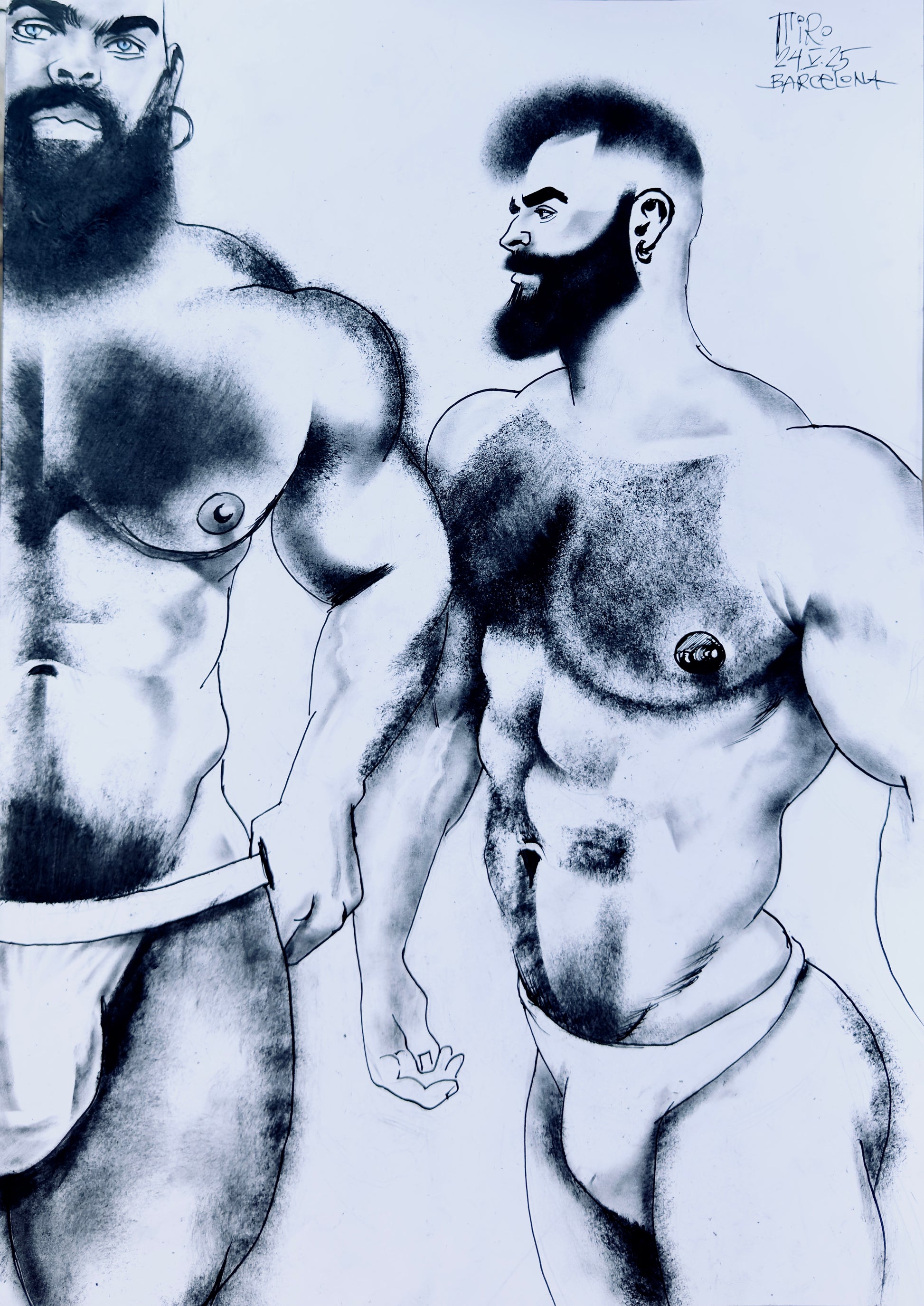Rendered in rich textures and bold lines, The Look Between Us captures masculinity in its most vulnerable and powerful form.